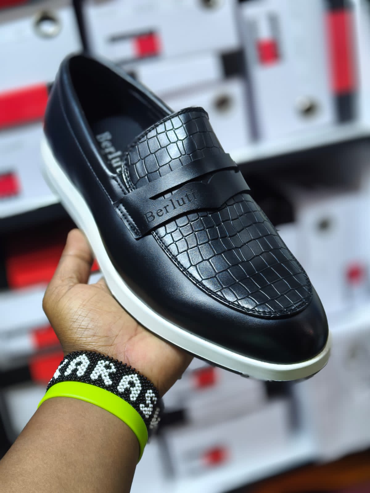 Berluti-Inspired Men’s Leather Loafer – Croc-Embossed Slip-On