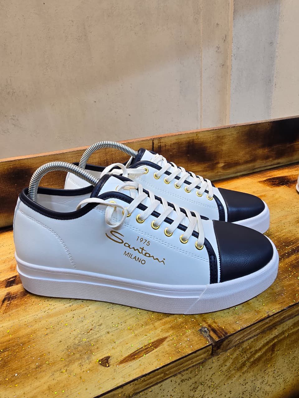 Santoni Milano Classic Low-Top Sneakers – White & Black