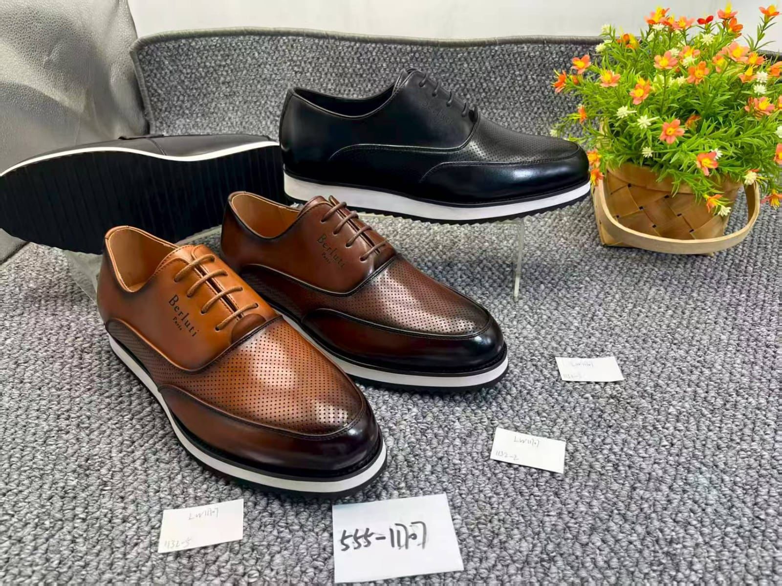 Men’s Premium Leather Lace-Up Dress Shoes – Perforated Oxford Style (Black & Brown)